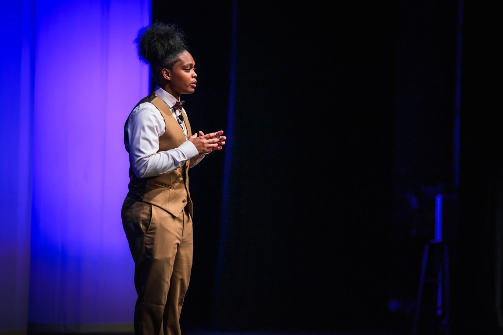 Long Beach City College student, Maleka Lassiter, gives the first-ever Youth State of the City address during the 2024 Long Beach State of the City event on Jan. 9, 2024. (Richard H. Grant | Signal Tribune)