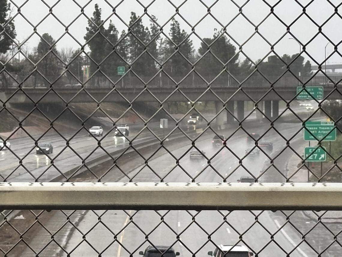 Rain seen on Highway 41 in Fresno, California on Monday, Feb. 16, 2026.