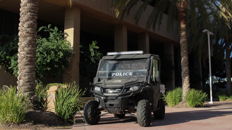 A Santa Ana Police vehicle outside of City Hall on July 16, 2024. Credit: ERIKA TAYLOR, Voice of OC