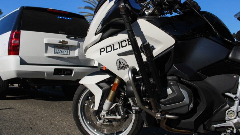 A Santa Ana Police Department motorcycle on Dec. 15, 2023. Credit: ERIKA TAYLOR, Voice of OC