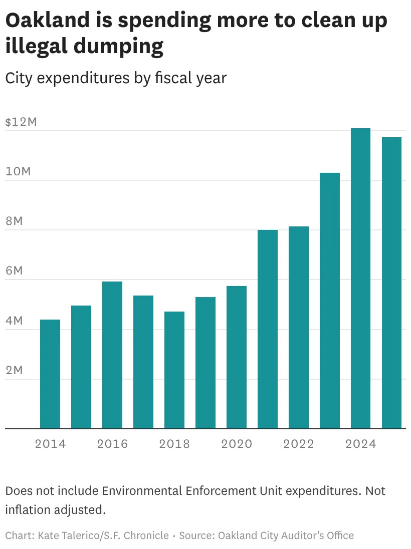 Last year, the city of Oakland spent more than $2 million to collect just $16,000 in illegal dumping fines.