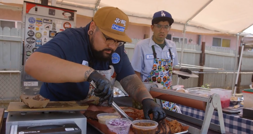With Alan Cruz, who runs A’s BBQ out of his childhood home in East L.A., he cooks his signature Texas-style briskets on a large smoker out of his backyard. On Saturdays, when he operates his pop-up out of his front yard, folks will gather under tented canopies to kick back and indulge in his al pastor sausages and cafecito spare ribs.