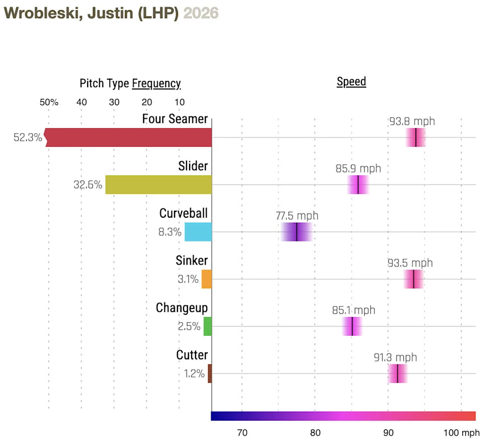 Justin Wrobleski is off to a very good start in 2026 in four appearances (three starts), with a 1.88 ERA and 0.875 WHIP and no home runs allowed in 24 innings.
