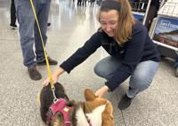Della Shapen goes to the San Francisco International Airport with her husband, Kevin, and their dog, Jetta, on Nov. 6, 2025. They were catching a flight to Denmark. Photo: Madeline Shannon / The Center Square.