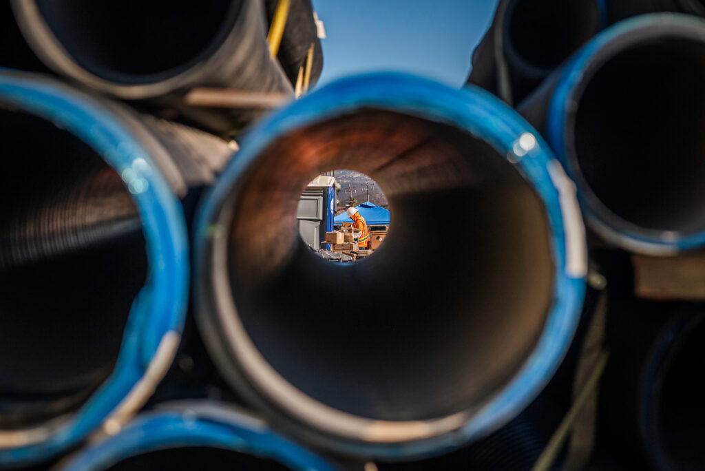 Construction workers onsite during the construction of the East County Advanced Water Purification Program in the Sycamore Canyon area of Santee on Friday, Nov. 7, 2025. /Vito Di Stefano for Voice of San Diego