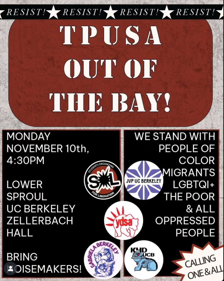 “The University is conducting a full investigation and intends to fully cooperate with and assist any federal investigations and the FBI-led Joint Terrorism Task Force to identify the outside agitators responsible for attempting to disrupt last night’s TPUSA event,” Mogulof told KQED in a statement. “UC Berkeley will take all appropriate steps to safeguard the right of every member of our community to speak and assemble freely.”