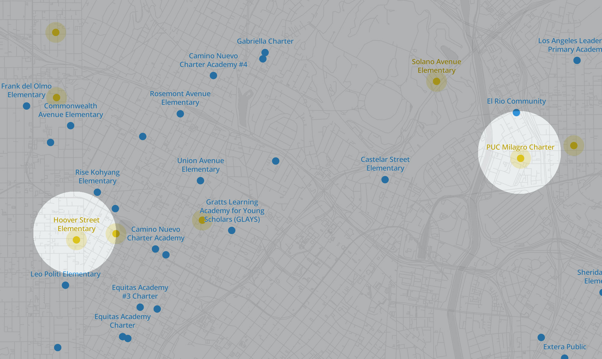 For example, we found that, based on our metrics, two of the three highest-performing schools in California happened to be less than 5 miles apart from each other in Los Angeles.