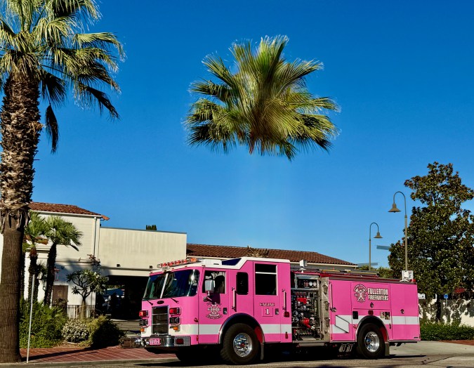 Last time: Many crazy answers, none correct on the three questions. Too difficult? The color pink signified Pinktober, the photo was taken in front of the Police Station on Chapman.