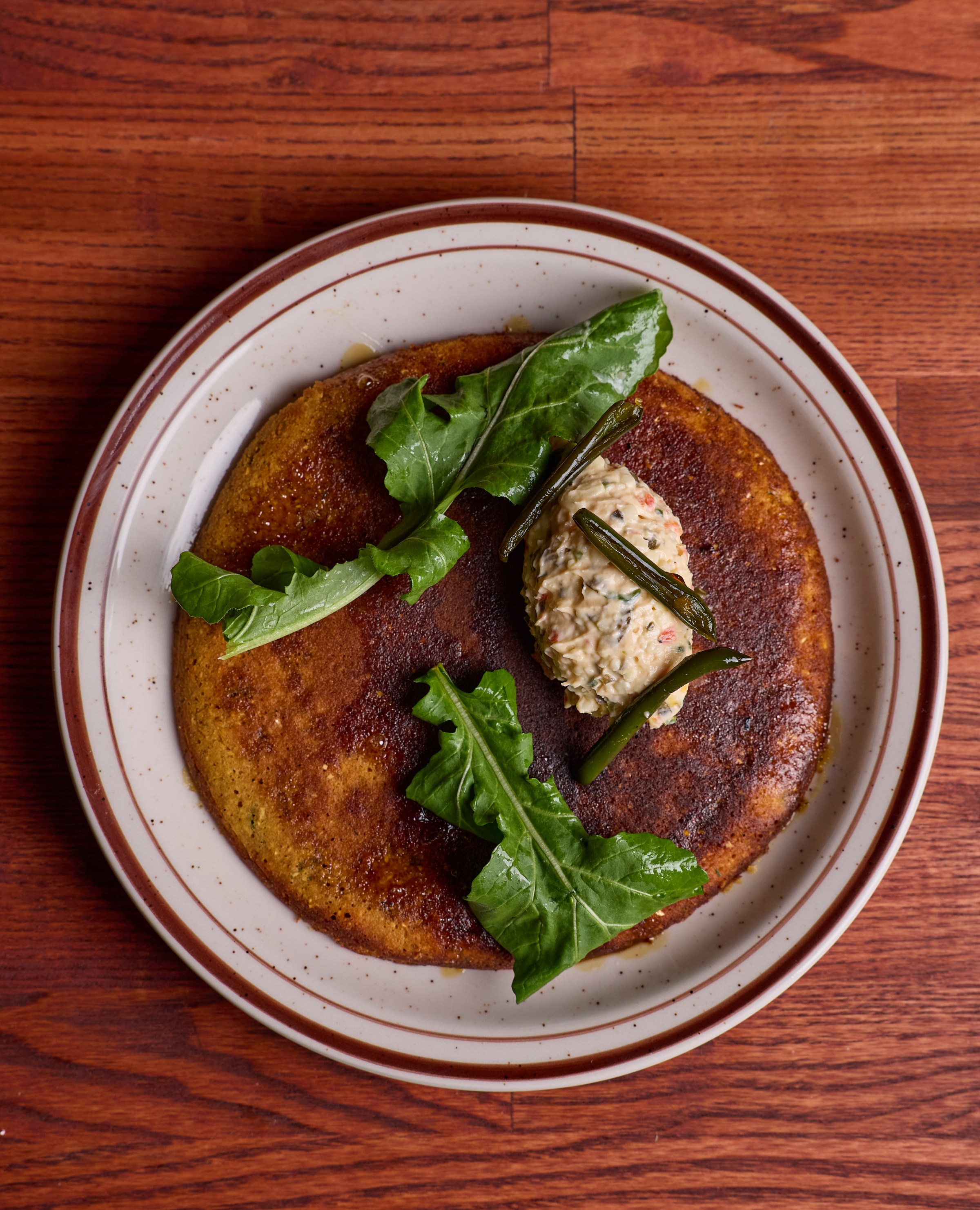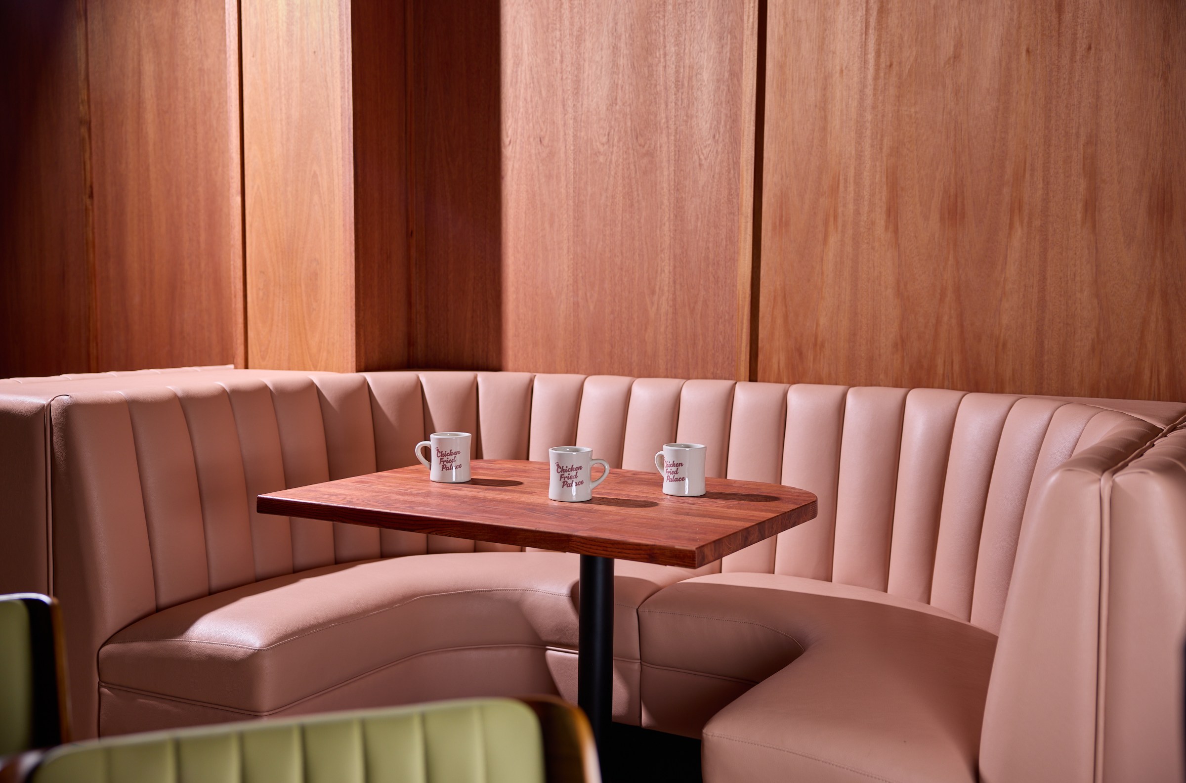 Besides the chicken-fried offerings, diners can find dishes such as patty melts and cornmeal pancakes. Stowaway and Jeanes also have some fun twists on familiar dishes planned, like the salt cod pancake with pimento cheese. Chicken Fried Palace’s trendy blooming onion will get the “grocery store sushi” treatment, per Stowaway, meaning it’s dressed in eel sauce, Kewpie mayo, and chile crisp. “We wanted to make sure we had some fun, kitschy stuff to just nod to the fact that we don’t take ourselves too seriously,” he says.