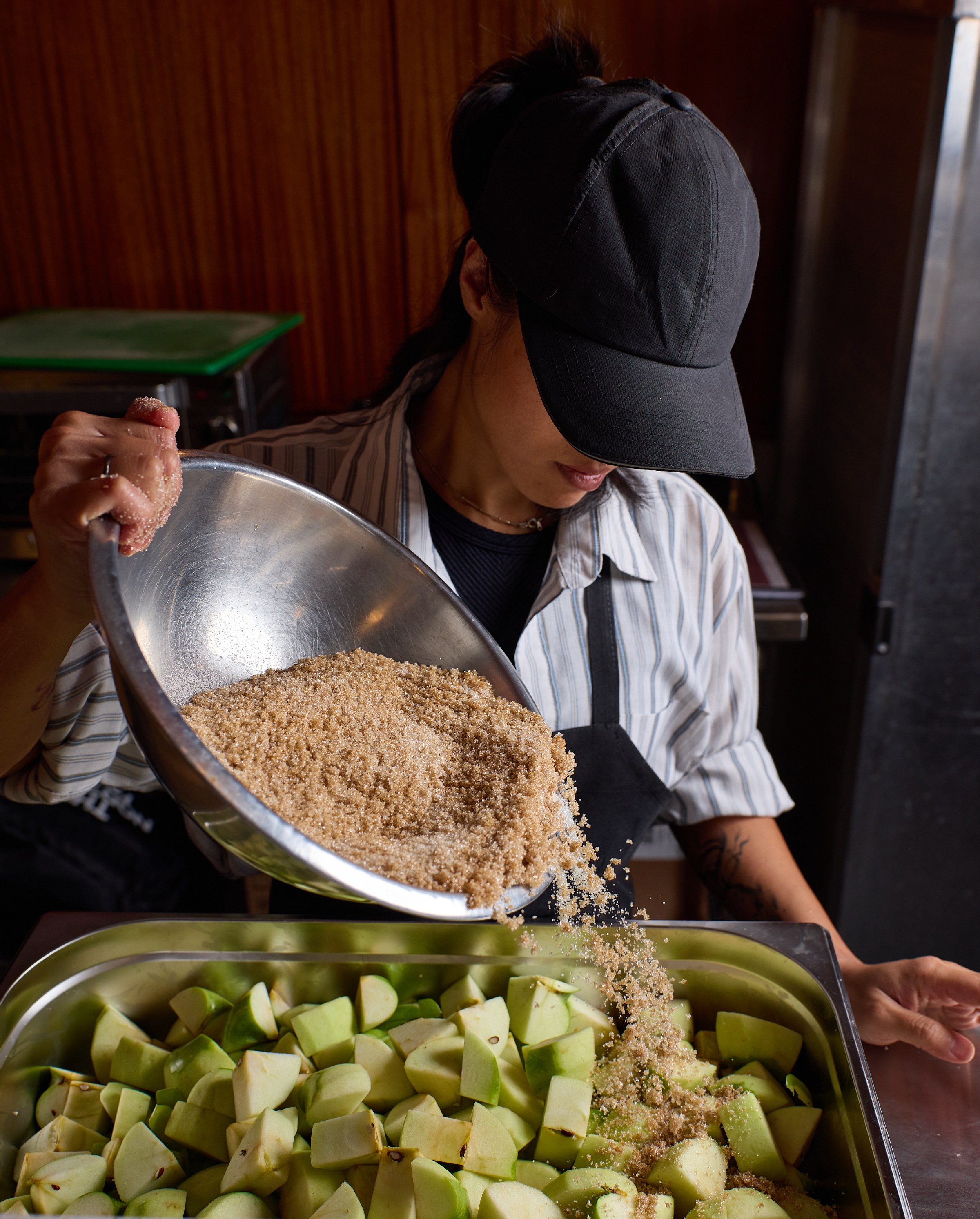 Desserts are also a centerpiece. Pastry chef Gabrielle Pabonan previously worked at high-end places like Craftsman and Wolves, the French Laundry, Quince, and Osito with Stowaway. Here, she’s creating desserts like sticky rolls, caramelized banana pudding, and a Matilda chocolate cake. She’s also working on a roster of pies, such as an apple and quince pie, sweet potato pie, custard pie with meringue, and classic pecan pie for the opening. Ice cream from Mitchell’s is also available.