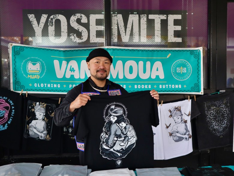Among the vendors was Vam Moua, owner of his Muaj Tiag collection, returning for his second year. Moua, who is based in Los Angeles, makes the drive north because Thor, a friend he met years ago in Long Beach, invites him to participate.