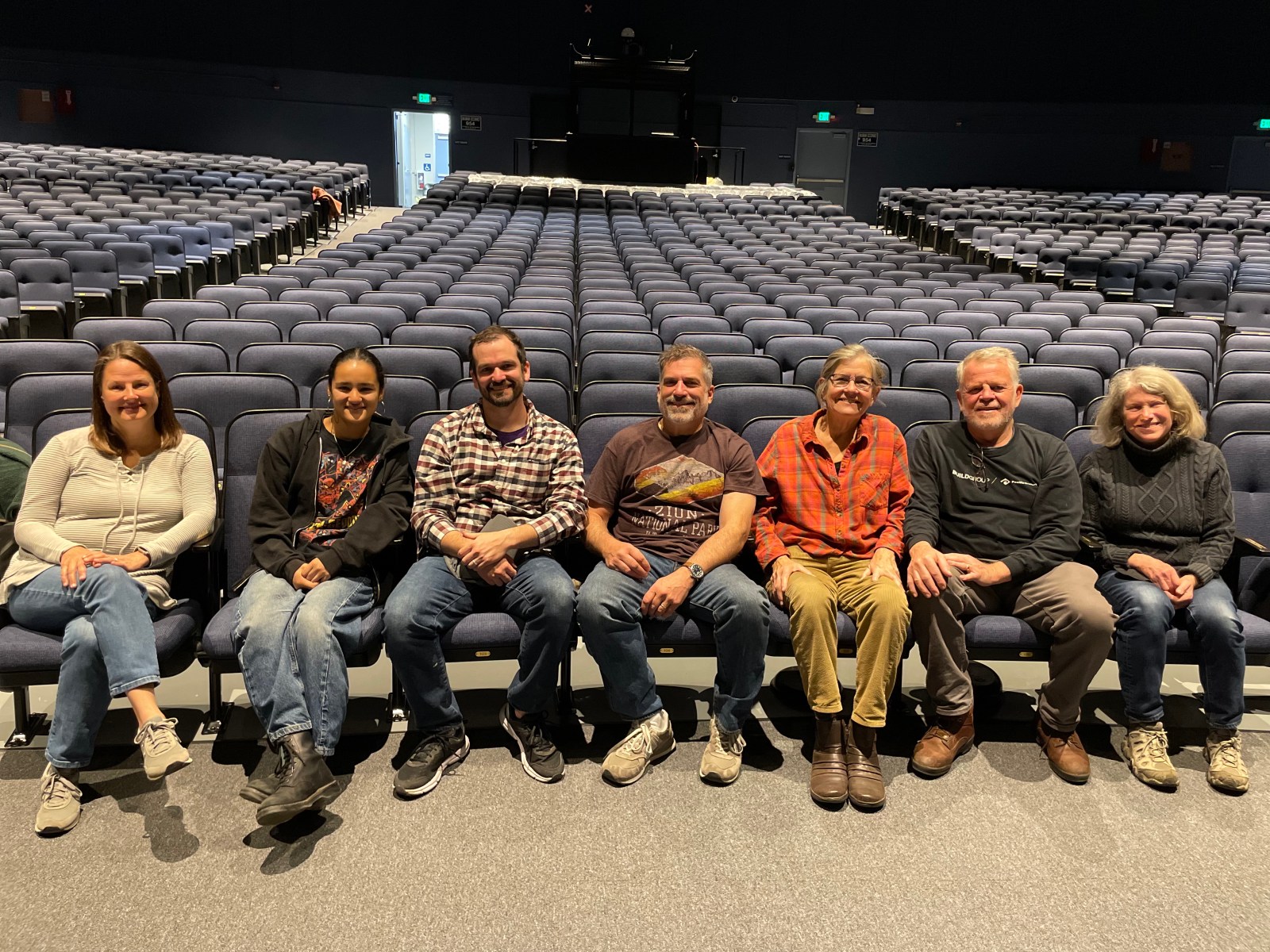 Some current members of the Oakland Tech PTSA auditorium committee on a recent work day include (from left) Amy Hood, parent and committee chair; Ayaan Sheft-Lin, student; Casey Fern, Tech drama teacher and sponsor for Tech Techies; Jeff Basch, alum parent, Katrina Brekke-Miesner, alum parent; Daniel Brekke, volunteer project manager and alum parent; and Pat Williams, alum parent. Credit: Paul Brekke-Miesner