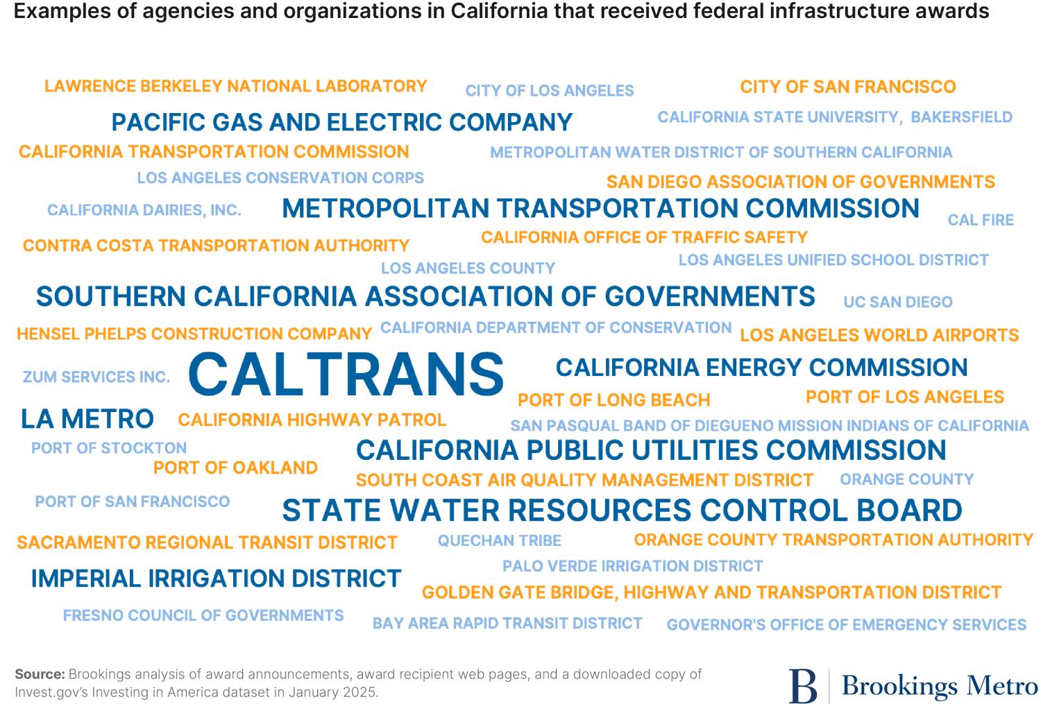Figure 2.  Examples of agencies and organizations in California that received federal infrastructure awards