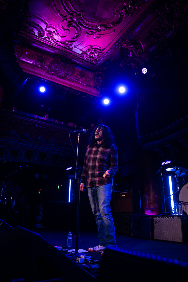 The set opened aggressively with new cuts “Nowhere” and “Strange Places.” Both were driven by heavy, distorted guitar riffs that recalled the band’s grunge-adjacent roots. Soft, faded lights gave way to flickering beaming green hues that transformed the room’s ornate details into a glossier patina.