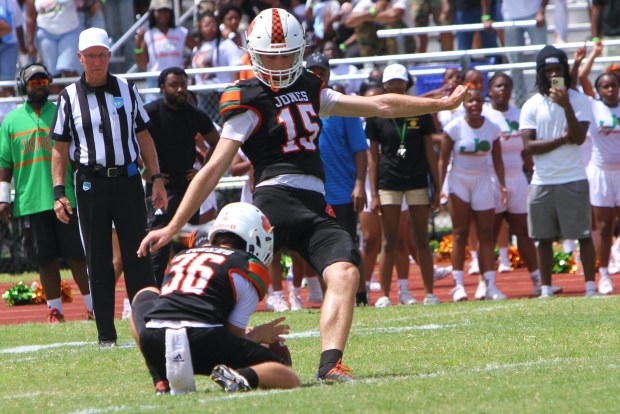 Mullis transferred to Jones from Bartow before his junior season, and he gave the Tigers their first legitimate field-goal threat in more than 20 years. He kicked a school record 53-yard field goal as a senior, and also made a pair of 45-yarders. He was a big part of why Jones was able to keep its 4A state title game close in the early going, averaging 44 yards on three punts. He has yet to sign to play college football.
