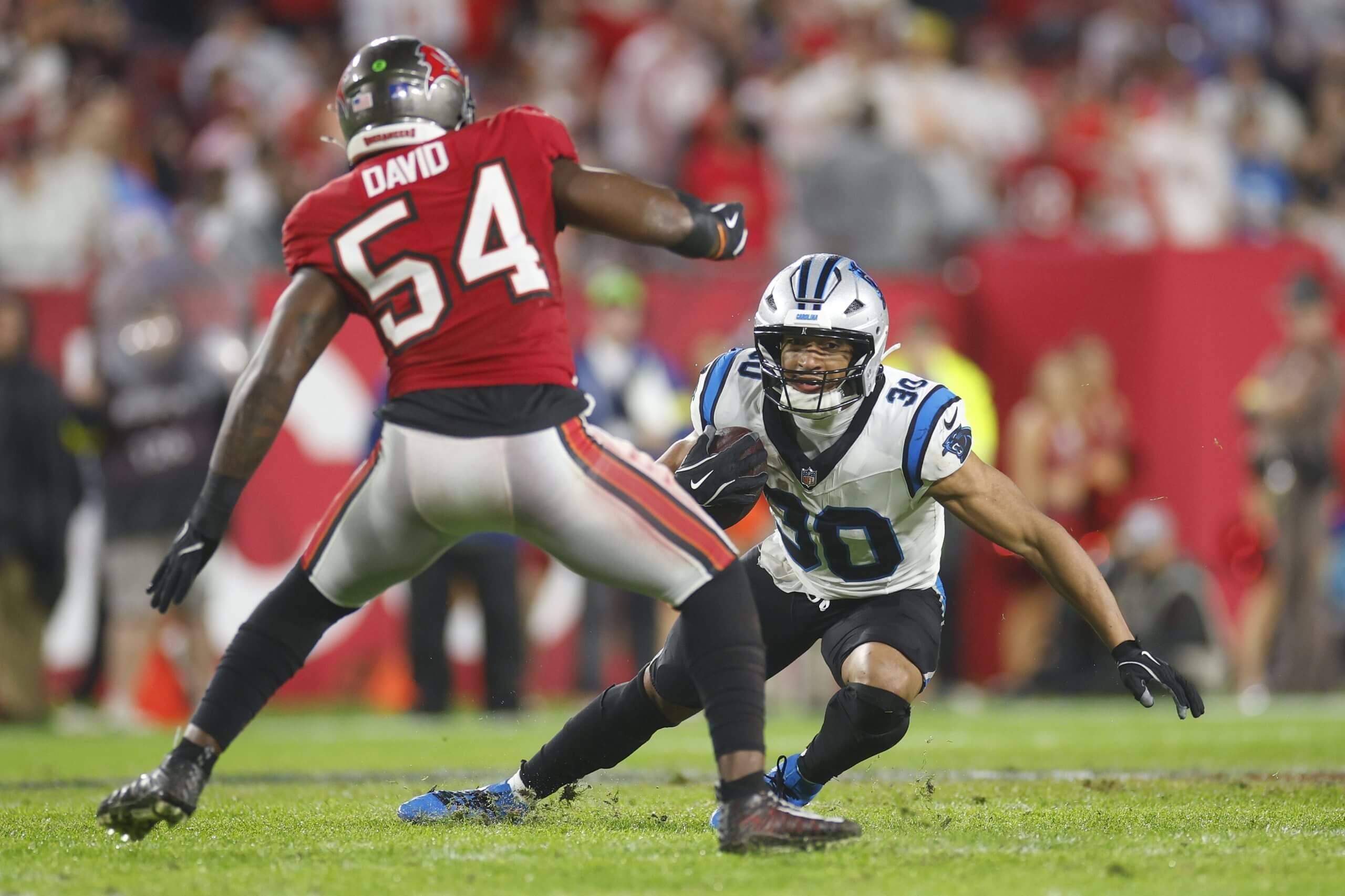 Chuba Hubbard and the Panthers’ running game never got going against the Bucs. (Mike Ehrmann / Getty Images)