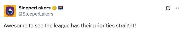 Taking to X on Saturday, one fan wrote: ‘Adam Silver taking care of the important stuff. No need to be worried about the ineptitude of the NBA’s officiating…’