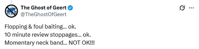 Another said: ‘Flopping & foul baiting… ok. 10 minute review stoppages… ok. Momentary neck band… NOT OK!!!’