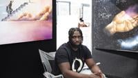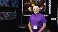 Steve Cebula stands in his booth at the Coconut Point New Year’s Art Festival on Dec. 28. The Palmdale, California-based artist and his wife, Lynn, have worked the national art festival circuit for decades, producing mixed-media pieces during the week and selling them on weekends.