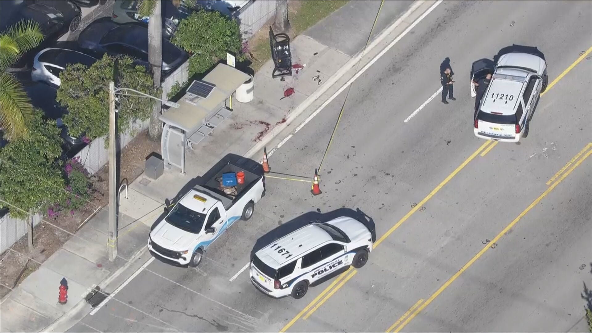 Police officers and fire rescue personnel responded at about 9:55 a.m. to a bus bench along North Avenue of Arts, near Northwest Ninth Street.