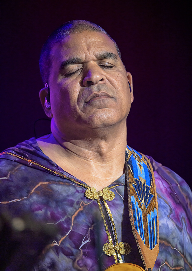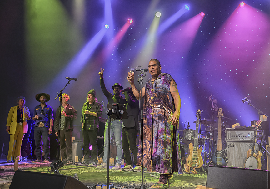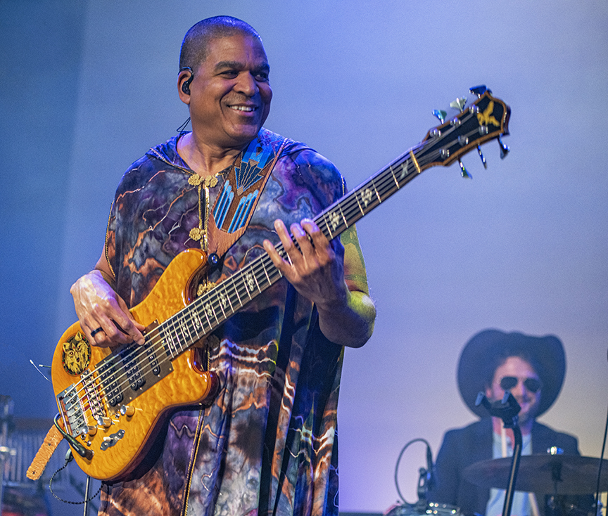 Oteil stepped into the glow dressed not like a rock star but like a traveler returning from somewhere ancient, wrapped in a flowing Egyptian galabiya that turned the stage into something closer to a sanctuary than a venue. It wasn’t a costume. It was context. Freshly back from Egypt, Oteil carried that journey with him — not as spectacle, but as feel. His bass lines moved like currents instead of riffs, circular and grounding, more about gravity than flash.