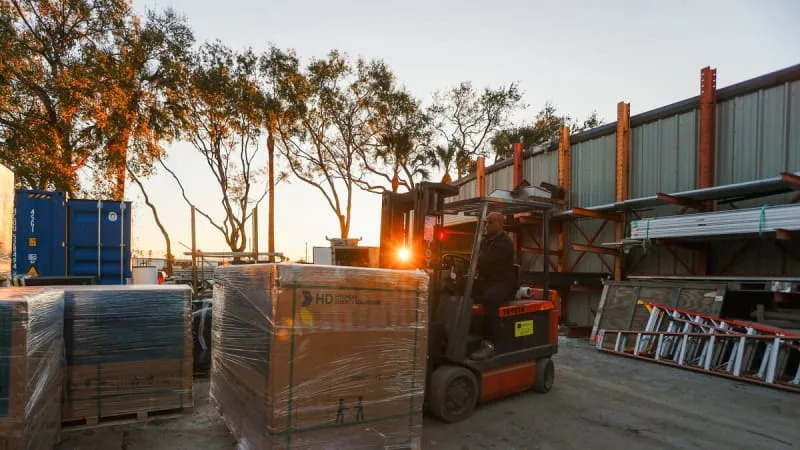 Lively Latin music trumpeted from the open windows of a company van, providing the soundtrack as workers loaded solar panels onto vehicles with a forklift.