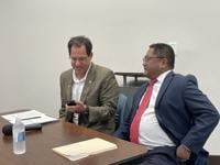 Charlotte County Commission Chair Joe Tiseo and County Administrator Hector Flores sat across from Lee County Commissioner Kevin Ruane and Lee County Manager Dave Harner during the brief session.
