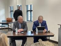 Charlotte County Commission Chair Joe Tiseo, left, and County Administrator Hector Flores sit during a conflict resolution meeting with Lee County officials Jan. 5 at the Punta Gorda Charlotte Library. The meeting ended without an agreement on Boca Grande parking rules.