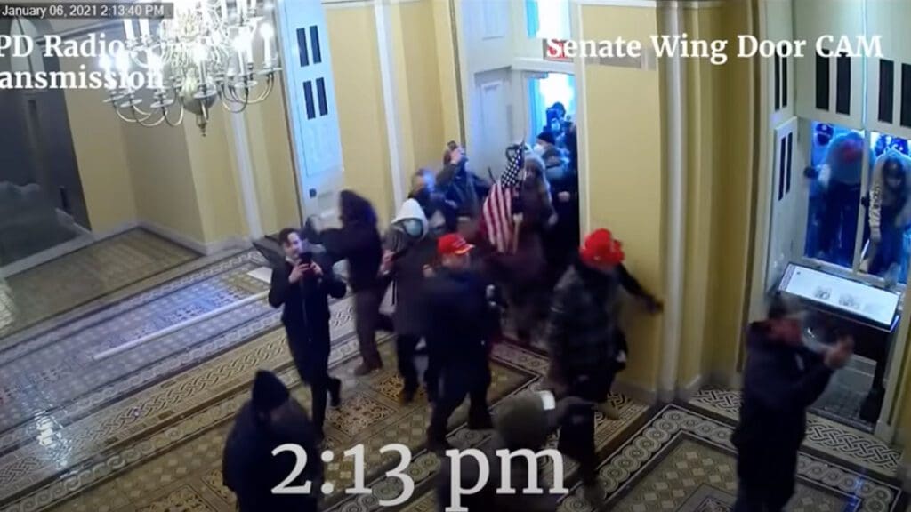 A group of rioters break into the U.S. Capitol, Jan. 6, 2021. (U.S. House of Representatives Jan. 6th committee via KBI)