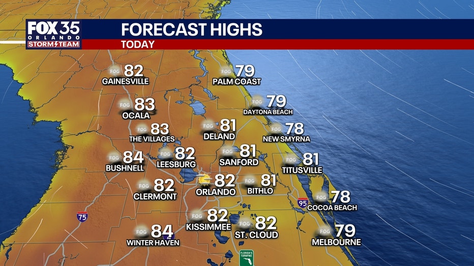 ORLANDO, Fla. – A few areas of dense fog are possible this morning, but it will be much more patchy and spotty compared to the last few mornings.