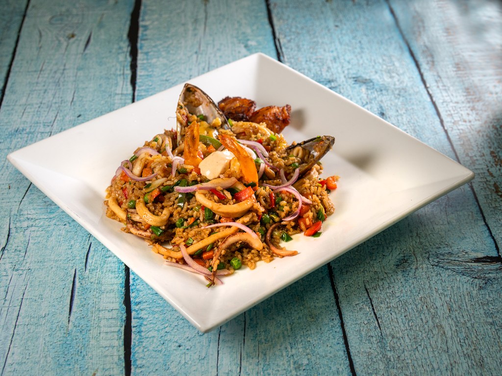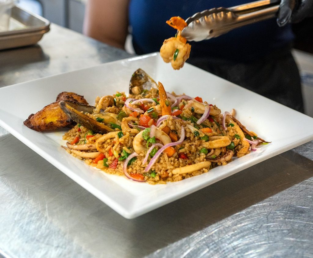 The main menu covers bowls, tacos, sandwiches, and traditional plates. Most seafood options are available grilled, blackened, fried or jerked. Proteins range from snapper, grouper, hogfish, mahi mahi, and corvina to tuna, shrimp, lobster, and octopus.