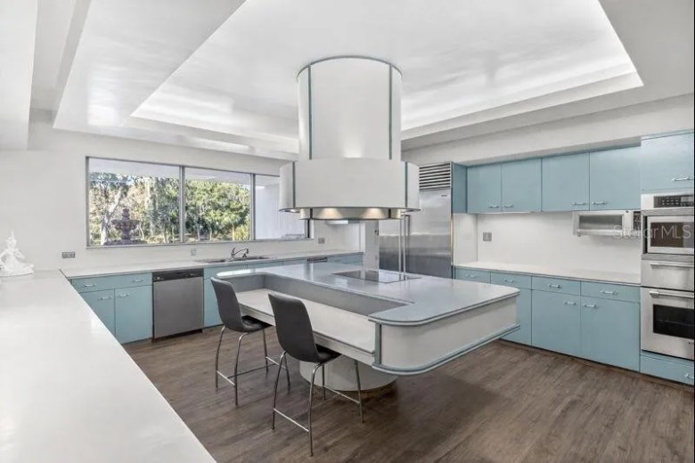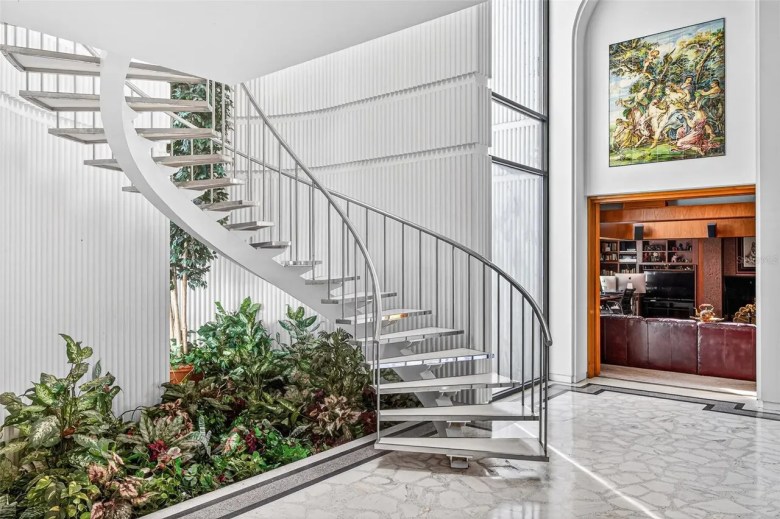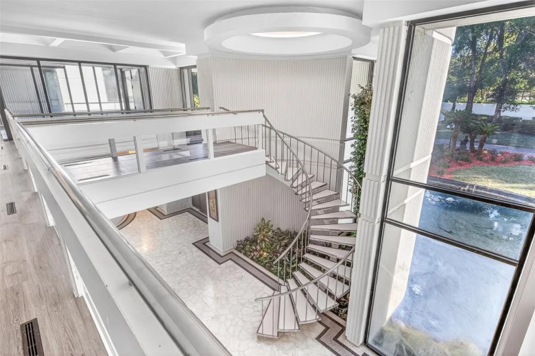 Located at 812 Sweetwater Club Blvd. in Longwood, the home is dubbed “The Fortress.” It was originally custom-designed and built in 1979 for the billionaire founders of Publishers Clearing House, Harold and LuEsther Mertz.