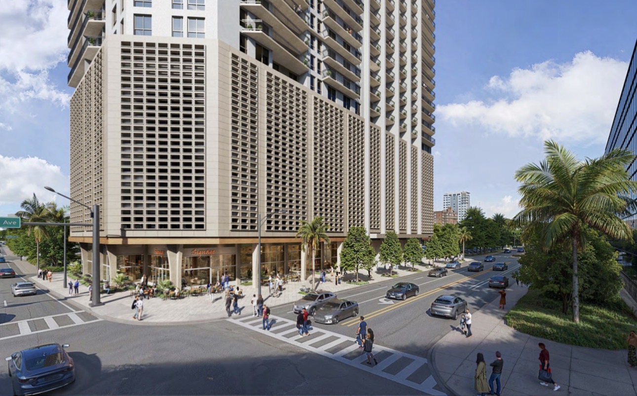 The proposal indicates that the project exceeds the City’s minimum open space and landscape requirements, with streetscape improvements planned along both Broward Boulevard and North Andrews Avenue. Sidewalks with a minimum clear width of seven feet are proposed to enhance pedestrian circulation and improve the public realm along the site’s frontages.