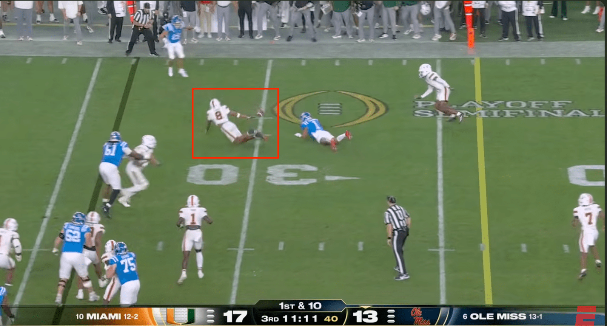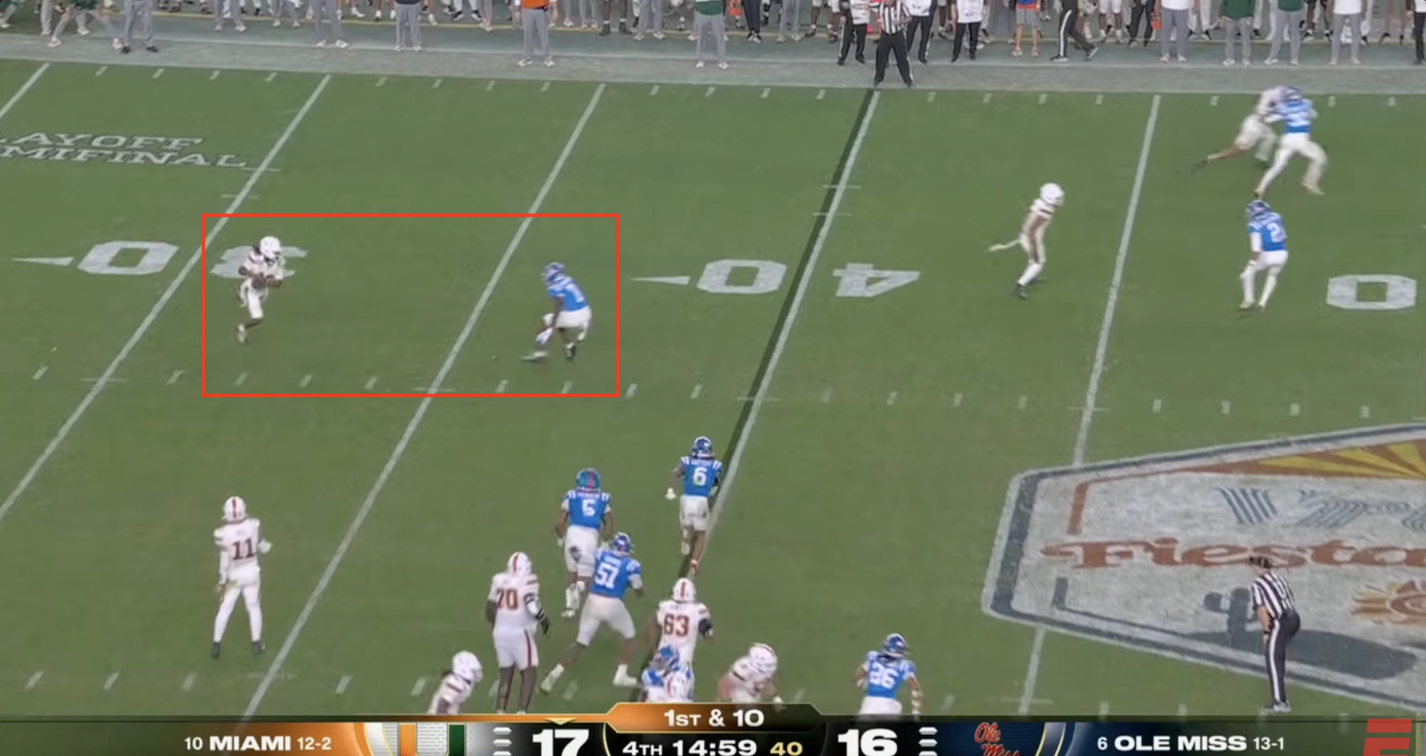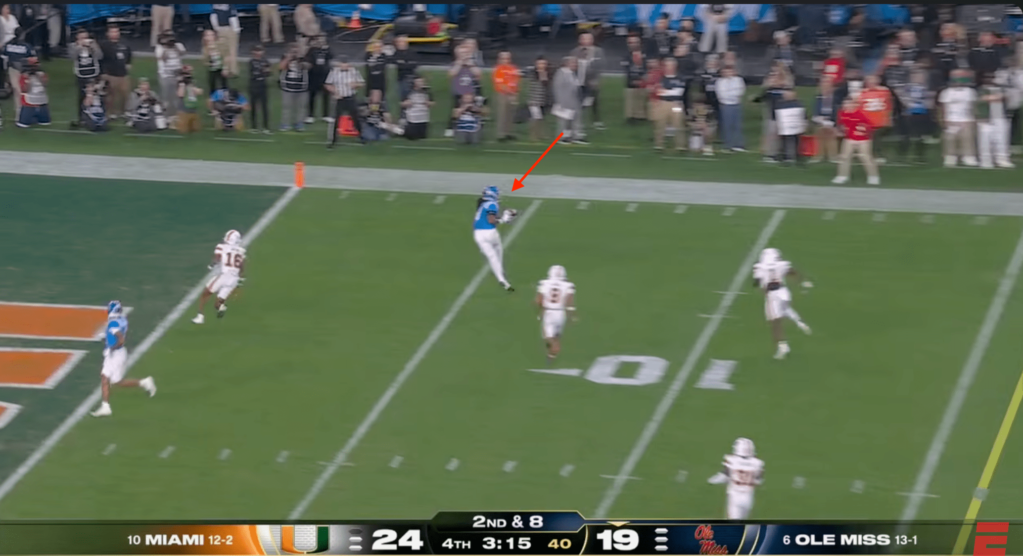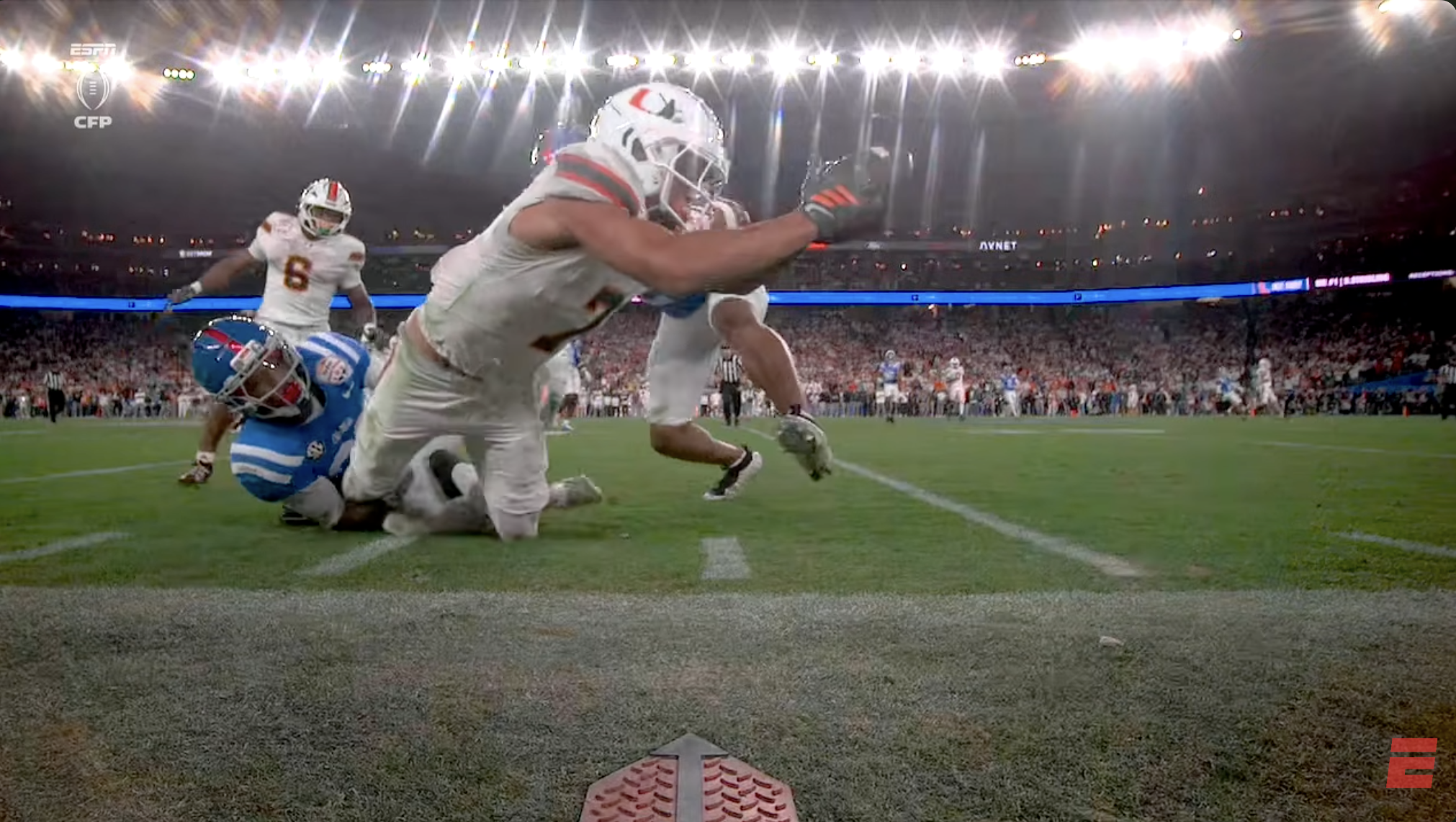 Above- One thing you can’t deny is the effort. Miami might’ve had stupid penalties and dropped INT’s, a targeting… but man they were trying. CJ Daniels effort here was championship caliber.