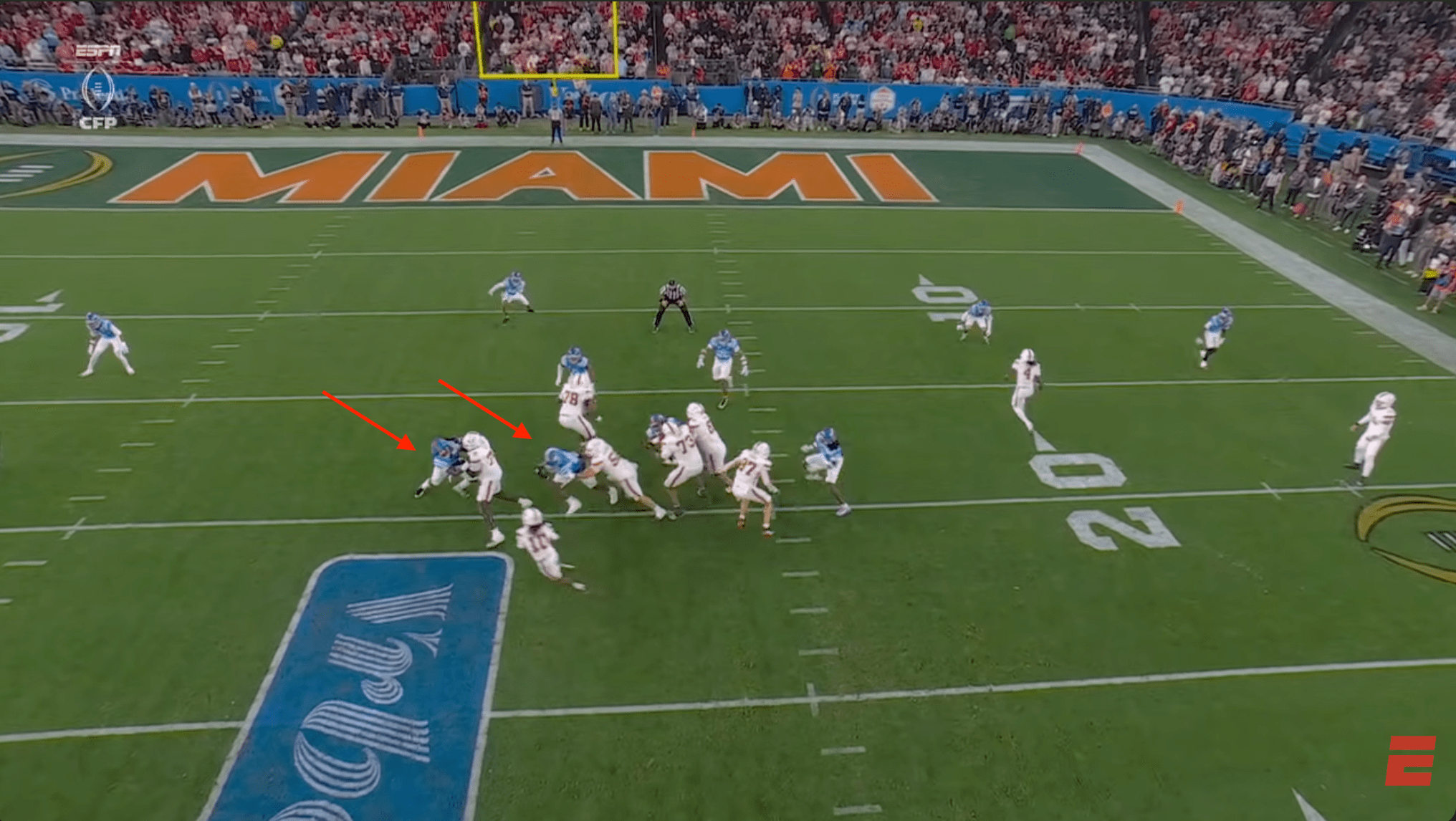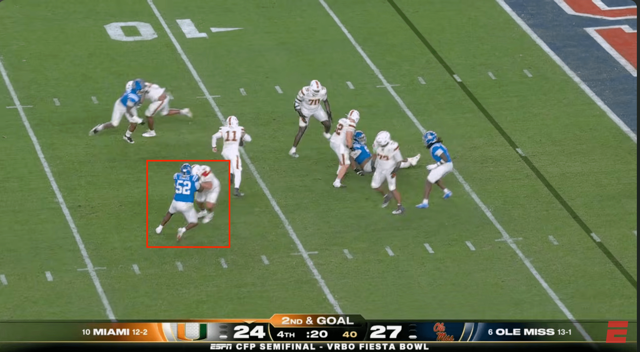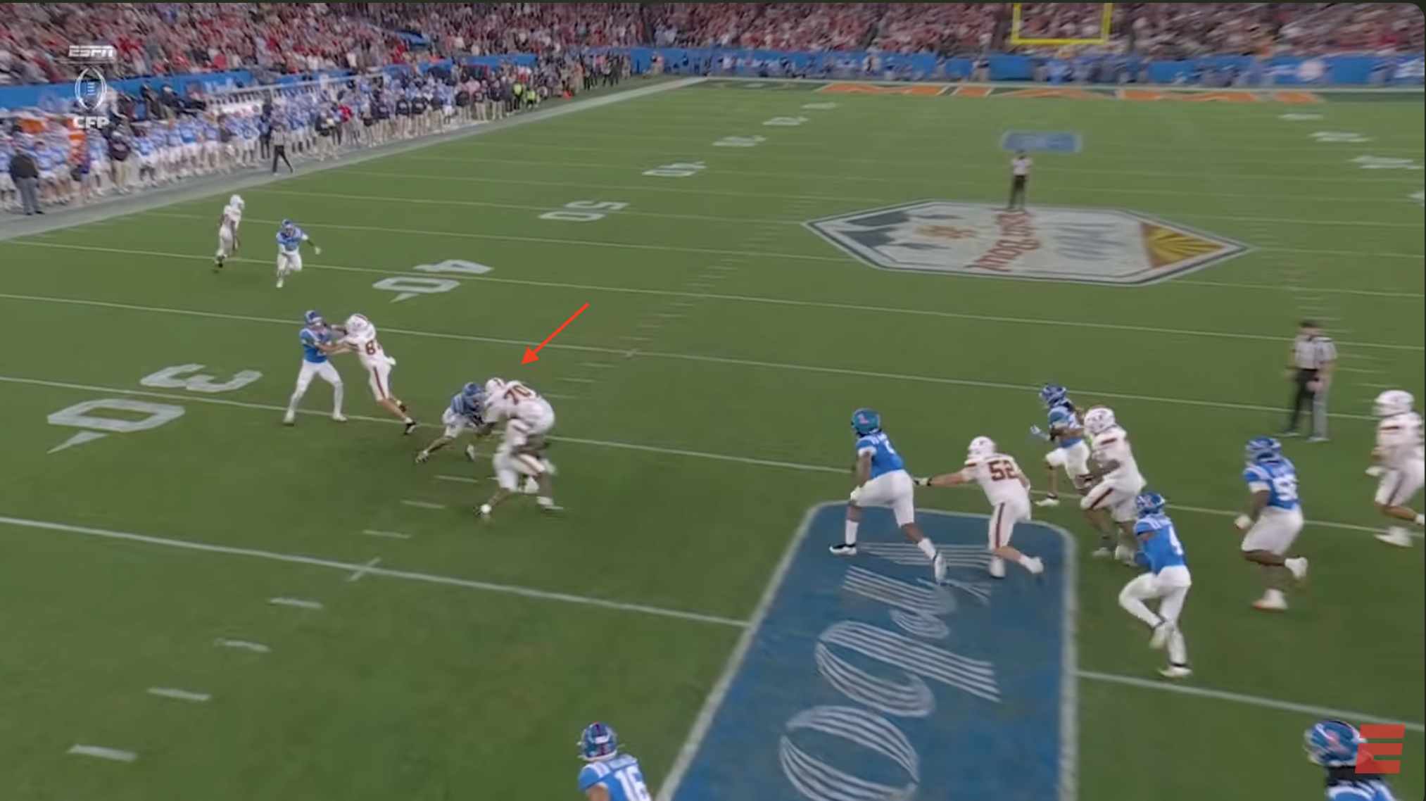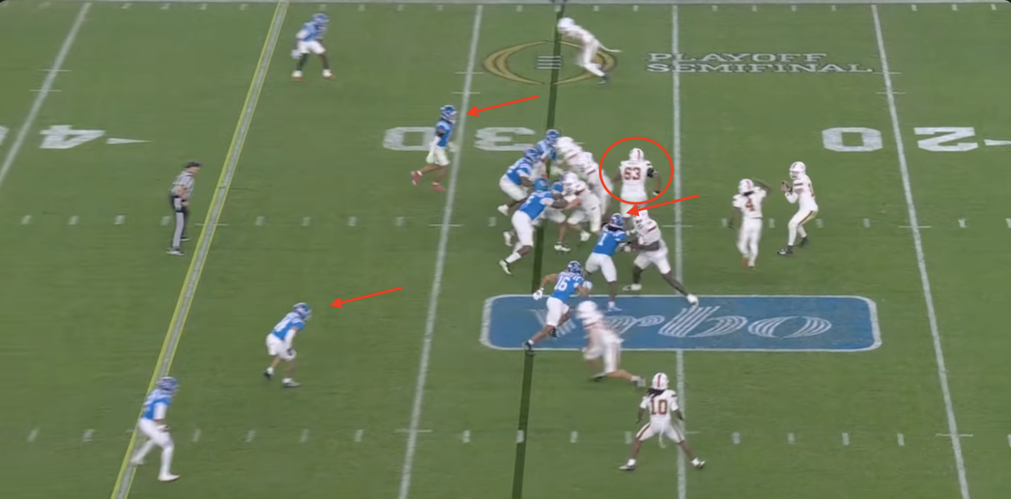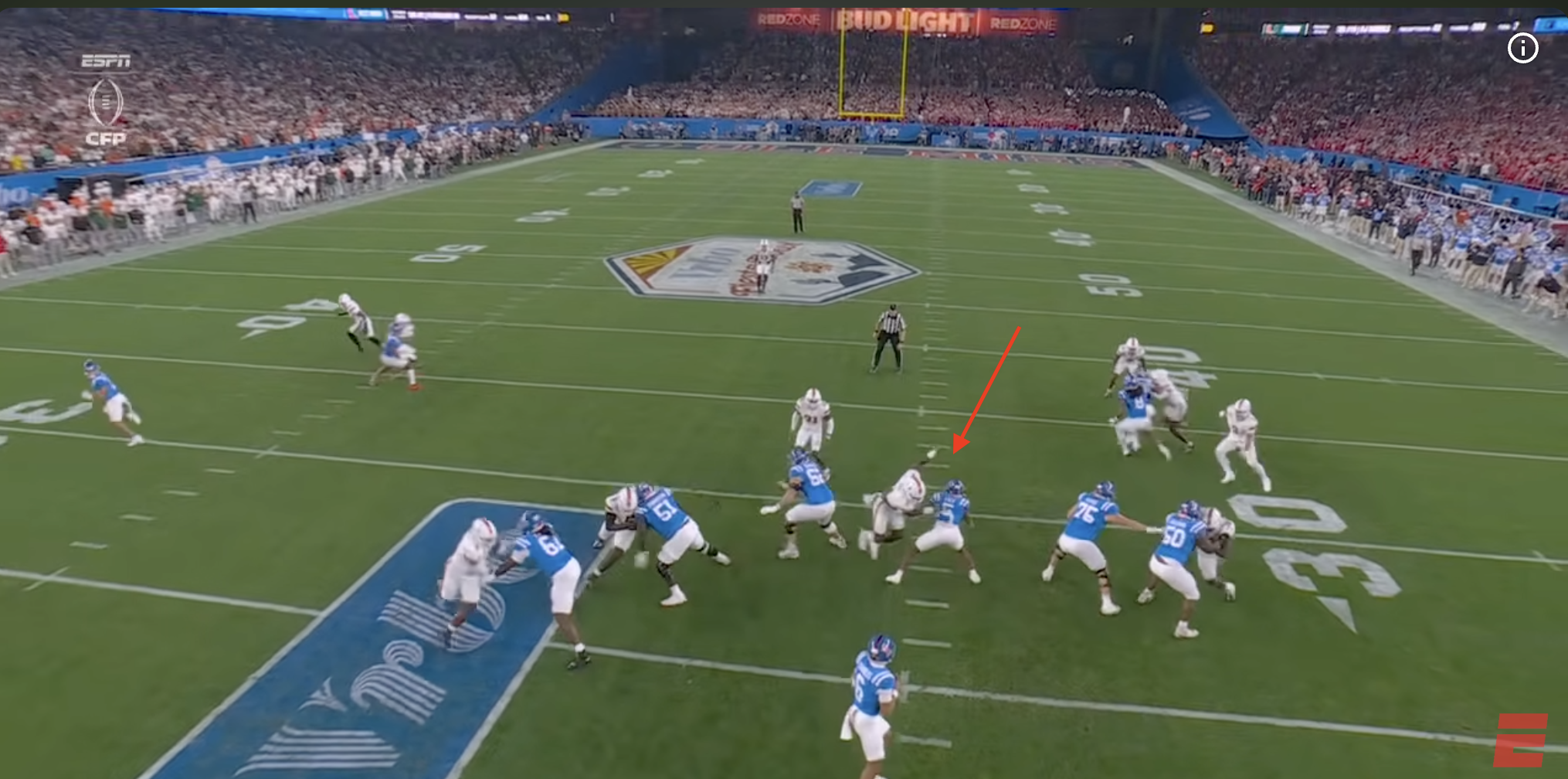 Above- One thing you can’t deny is the effort. Miami might’ve had stupid penalties and dropped INT’s, a targeting… but man they were trying. CJ Daniels effort here was championship caliber.