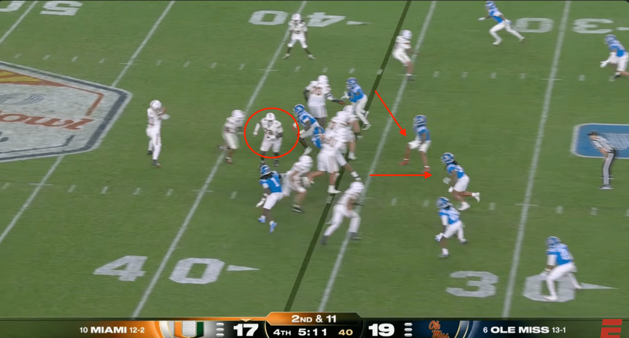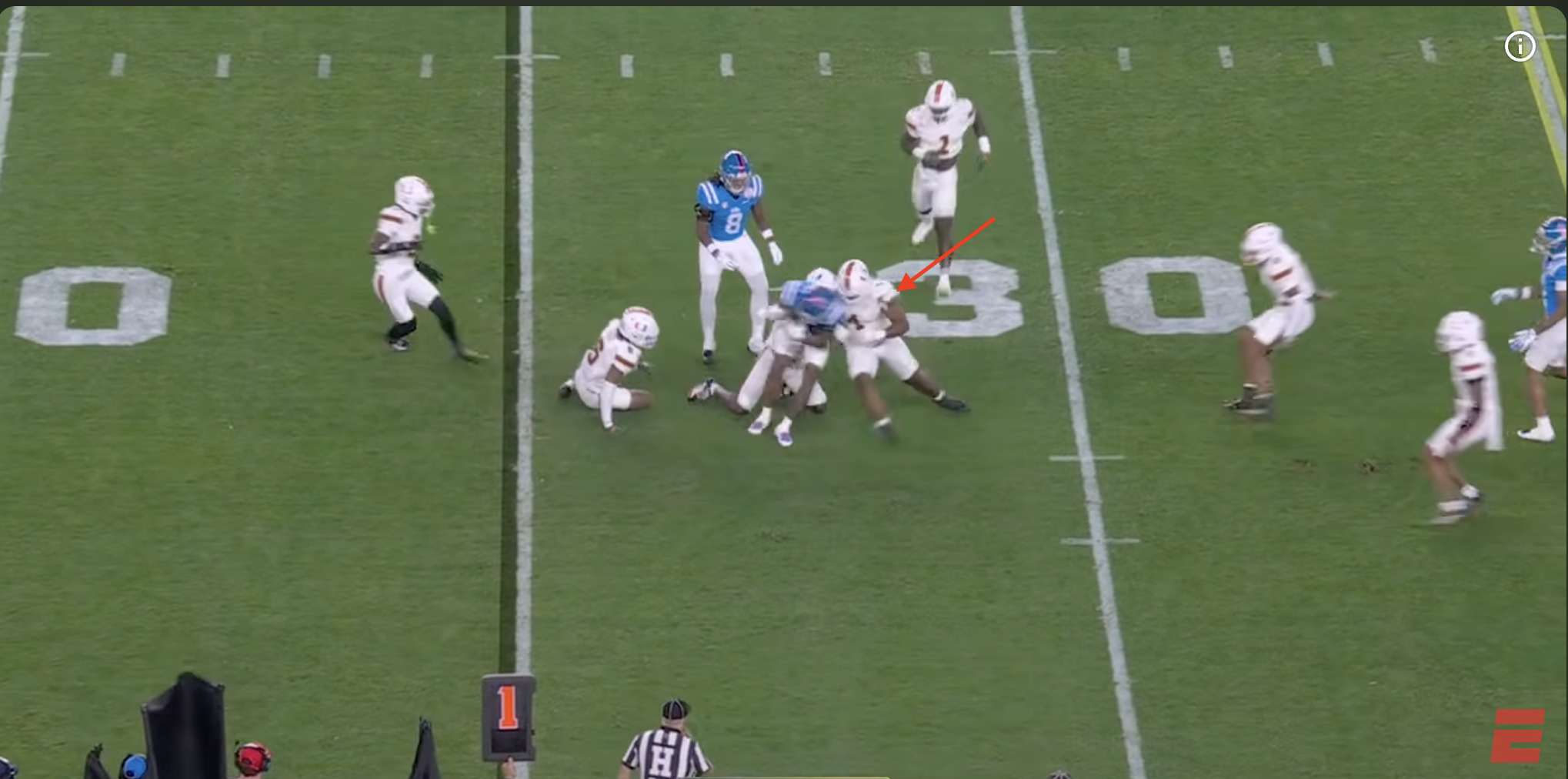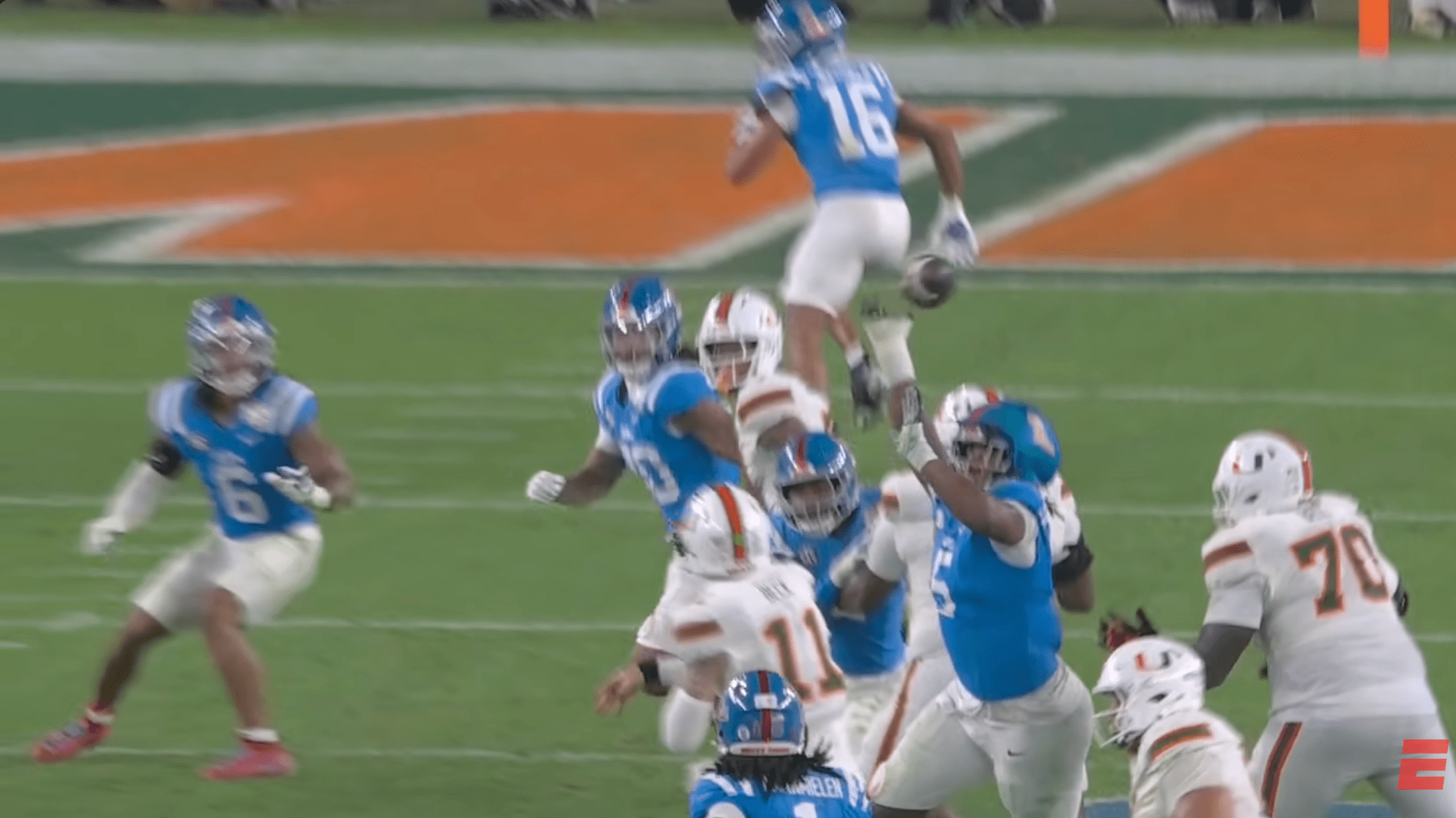 Above- Miami has to intercept these easy picks in the natty. Four dropped INT’s?! Get back on the vision training and work on your eyes.