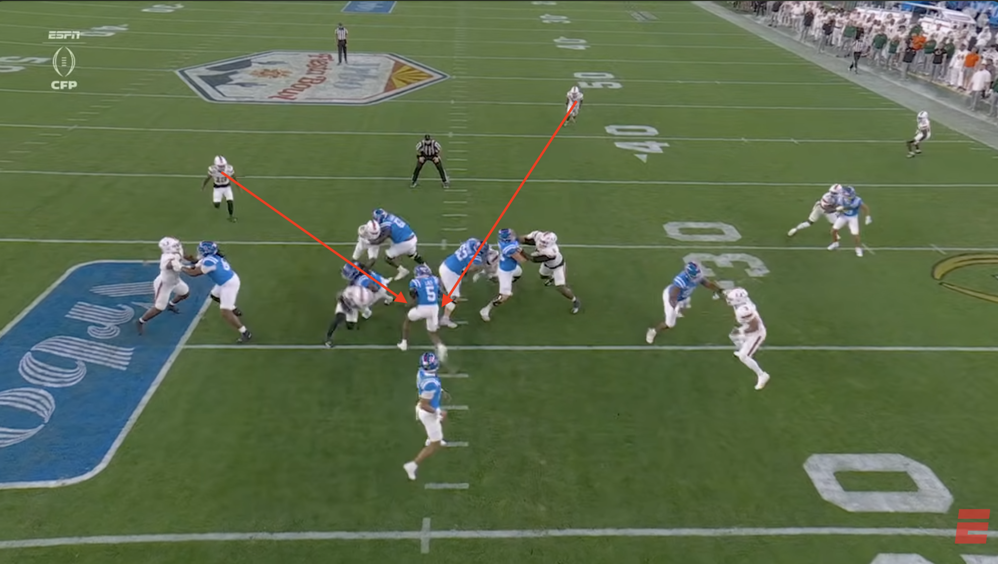 Above- Bain should know better. Come to balance, vice tackle with your teammate and WRAP UP. Every week the opponents are a little better. Oregon or Indiana will be a little better than Ole Miss.
