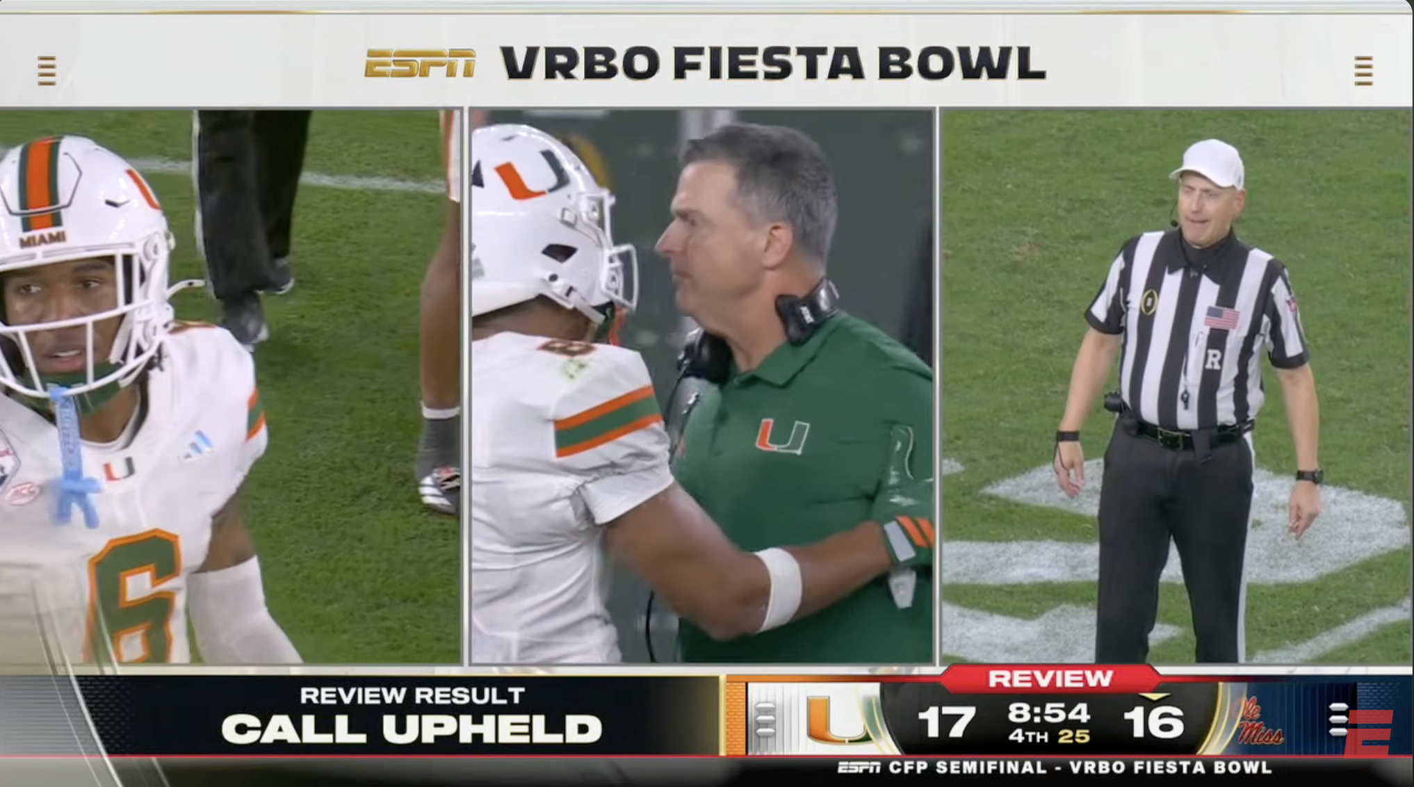 The Miami Hurricanes (13-2) beat the Ole Miss Rebels (13-2) 31-27 to lift the Fiesta Bowl curse and put the ‘Canes into the College Football Playoff National Championship Game. Don’t hug me yet, I might swear in your face like Mario Cristobal did to Kevin (who should know better after the 2003 Fiesta Bowl) Beard.
