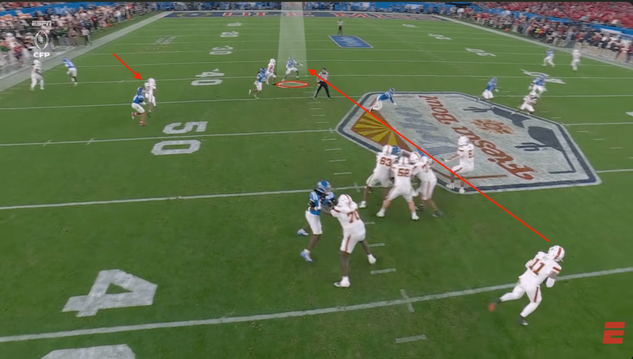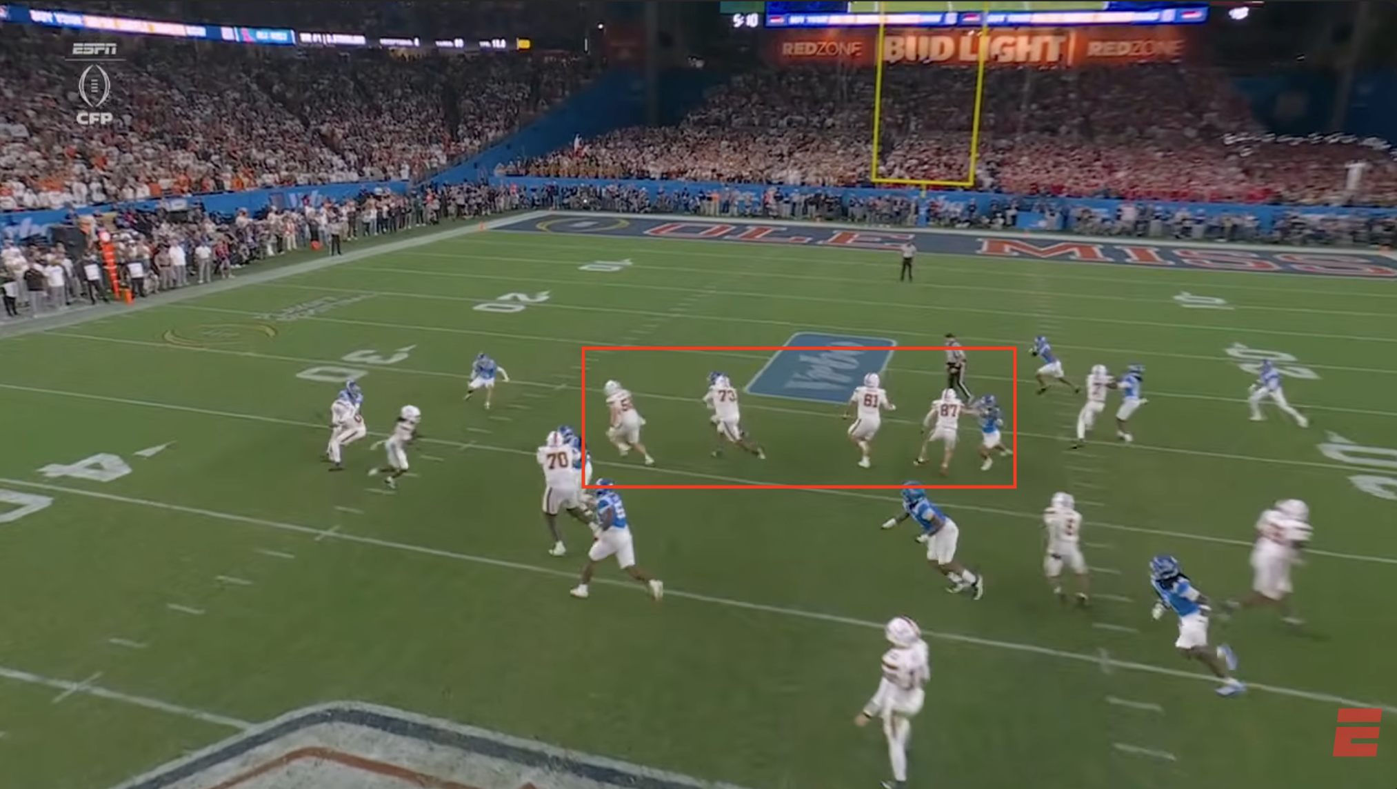 Above- Mauigoa saves the day with an insanely aware play. I have no idea how he knew to run back there but damn if he didn’t spring that Beck TD run.