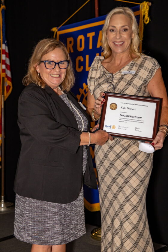 From right, Sanibel Captiva Community Bank Vice President and Director of Marketing Amy McQuagge accepts the Paul Harris Fellow Award from Rotary Club of Fort Myers — Sunrise member Bonnie Bolton on behalf of bank President and Chief Executive Officer Kyle DeCicco.