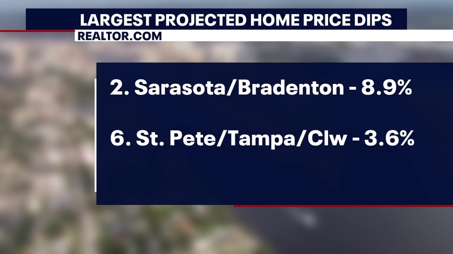 The Sarasota–Bradenton area ranked second highest in the country, with prices projected to dip 8.9%. The St. Petersburg–Clearwater–Tampa metro ranked sixth, with a projected 3.6% decline.