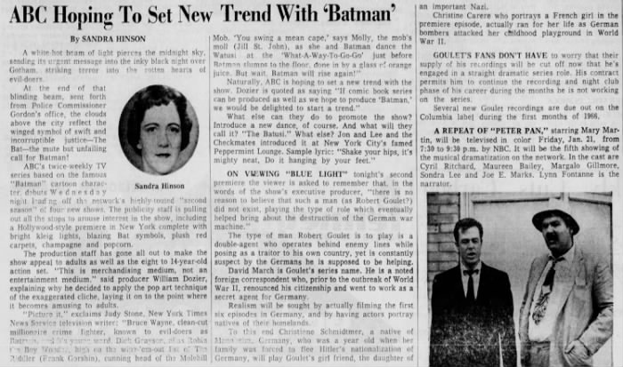 Sandra Hinson’s story previews the debut of what would become the iconic “Batman” TV series. Here’s her story: