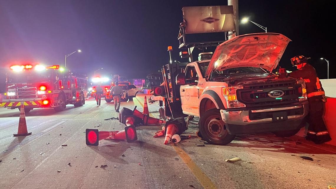 FHP said a driver did not yield to construction workers placing traffic cones on the Howard Frankland Bridge, crashing into their Ford F-550 commercial cab truck.