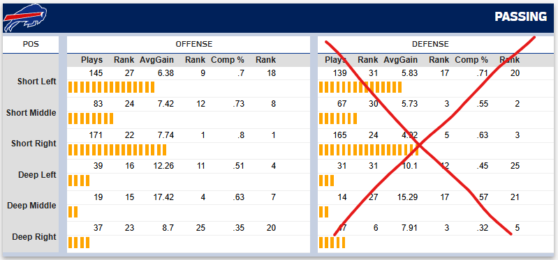 Okay, maybe I’ll point out one more thing. On short-left passes, the Bills are fine, with the ninth-highest average gain and an average completion percentage.