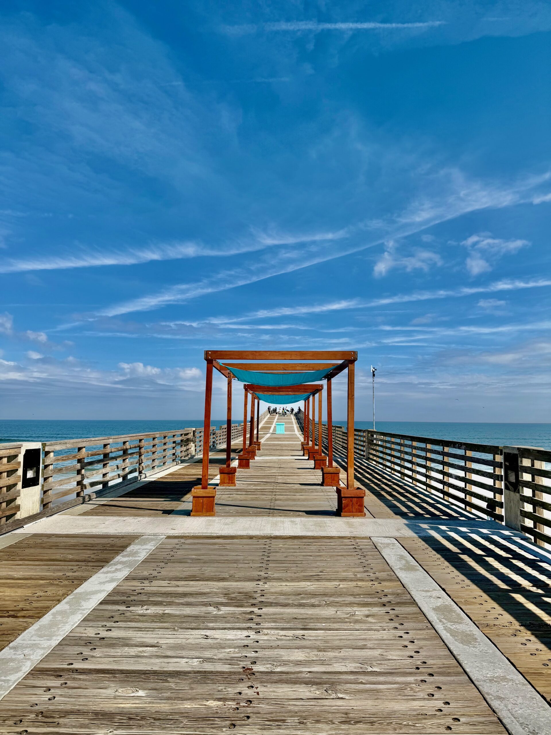 This trip was centered on Jacksonville Beach, where I’d never really been before, and it was darling. A very classic beachy town, but with seasons – I spotted no brave swimmers in the chilly Atlantic ocean during my mid-morning beach walks while we were there – but there were plenty of surfers catching waves in their wetsuits. We went to an enormous antique mall called Avonlea that even had a café and a beer and wine bar – genius. Walking around shopping with wine in hand is known to loosen wallets — I’m living proof. We loved riding our bikes (it’s such a pedestrian-friendly beach) and seeing so many different styles of architecture, but mostly pastel ranch houses built in the ‘50s and ‘60s that smacked mid-century Florida. Plus, Jacksonville Beach boasts a pier that stretches out over the ocean for nearly a quarter of a mile!