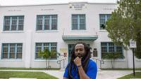 Emmanuel George, the curator of the Old Dillard Museum, is photographed outside of the historic building in the Sistrunk neighborhood on Wednesday, July 10, 2024, in Fort Lauderdale, Fla. George curated the latest exhibit “Sistrunk, Then & Now” to show how the Black neighborhood has changed over the decades.