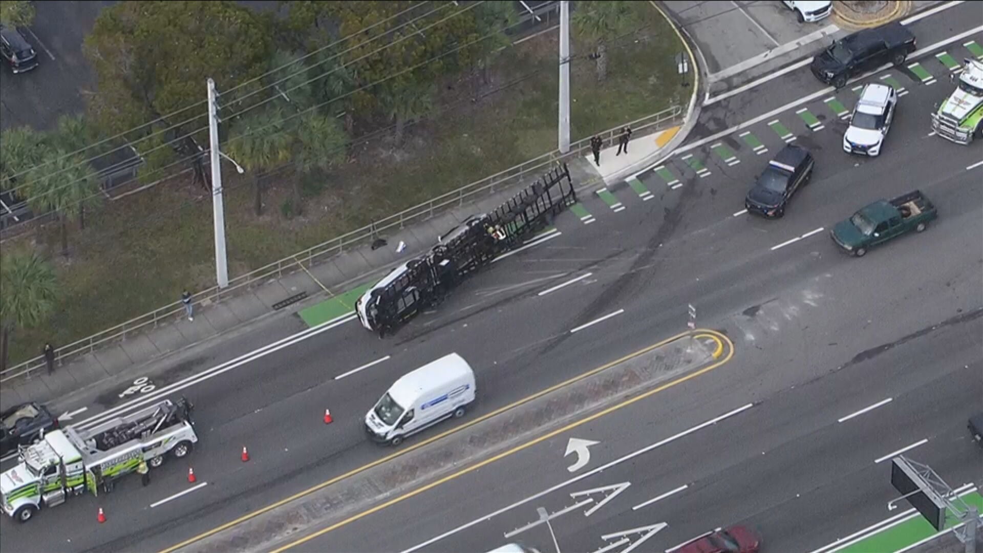 Sky 10 was above the scene at about 10:20 a.m. as only one southbound lane was open to traffic.