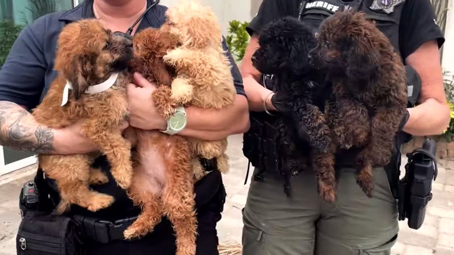 Investigators say some of the dogs had matted fur and were covered in urine and feces. One of the puppies had a potbelly, a symptom of worms.