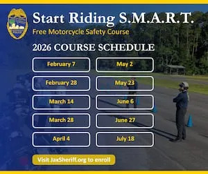 The S.M.A.R.T. Motorcycle Safety Course, a free training program funded by the Florida Department of Transportation, will begin on Feb. 7 in Jacksonville.