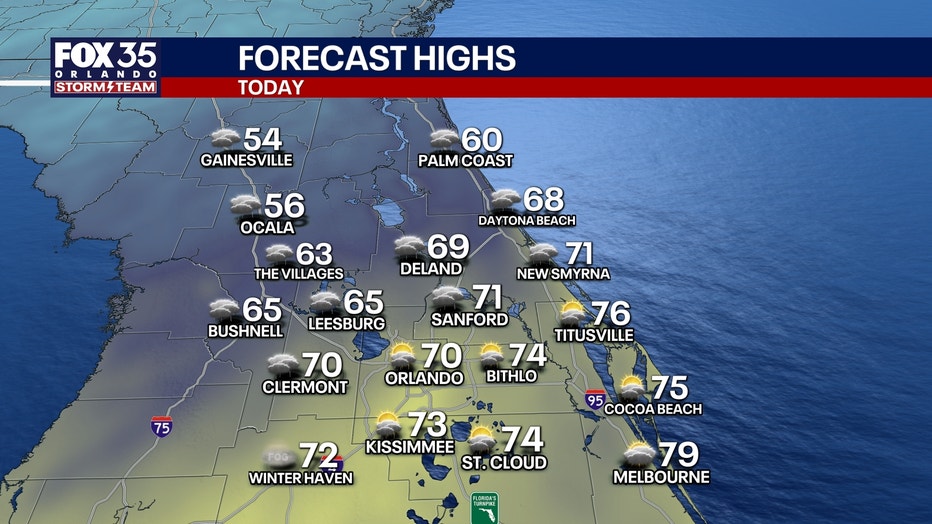 Temperatures then start to tumble on the backside of the front with highs near 70 in Orlando, ahead of it. Highs NW of the metro will struggle, only getting into the 50s-60s.Â